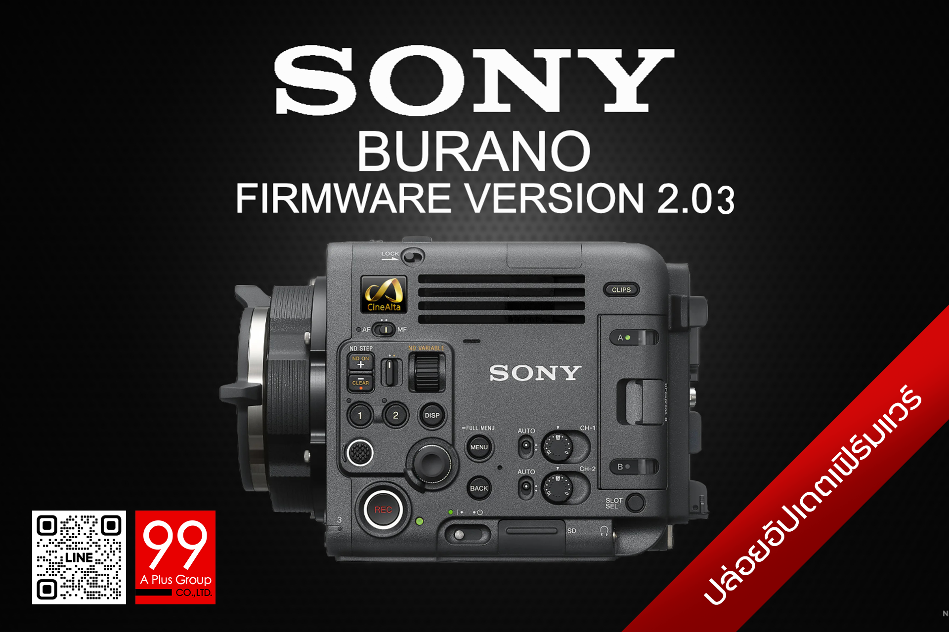 Sony ได้ปล่อยเฟิร์มแวร์เวอร์ชัน 2.03 สำหรับกล้อง BURANO เพื่อแก้ไขปัญหาการทำงานผิดปกติที่อาจเกิดขึ้นระหว่างบันทึกในโหมด X-OCN โดยเฉพาะเมื่อมีการใช้ฟังก์ชัน Auto Pixel Restoration (APR) ต่อเนื่อง