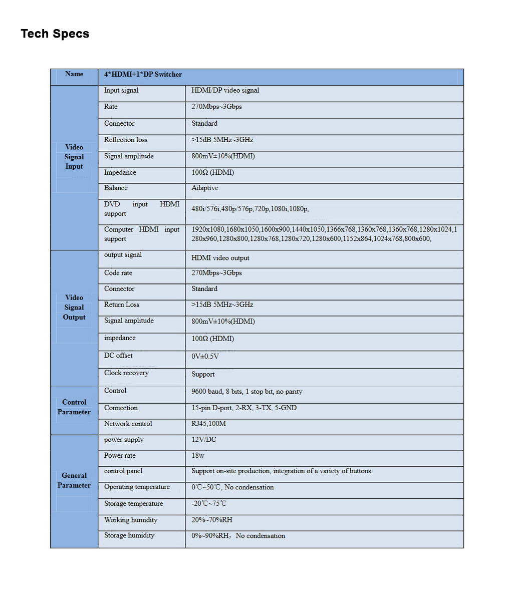 Devicewell HDS7105P HD Video Switcher (4HDMI+1DP)