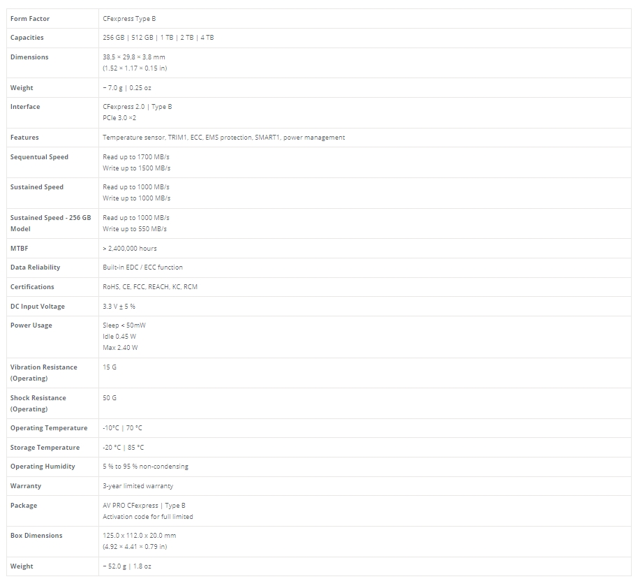Recording from HD and 4K to 12K and beyond. Nothing's holding you back, with no technical limitation to hinder your imagination, performance figures that are sustained and not simply claimed. The most advanced recording media technology is now in your hands. Specification